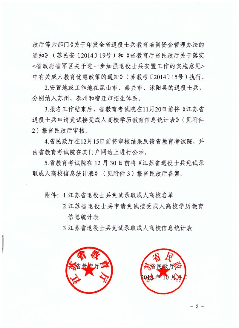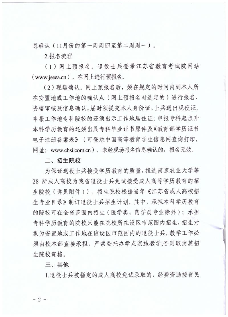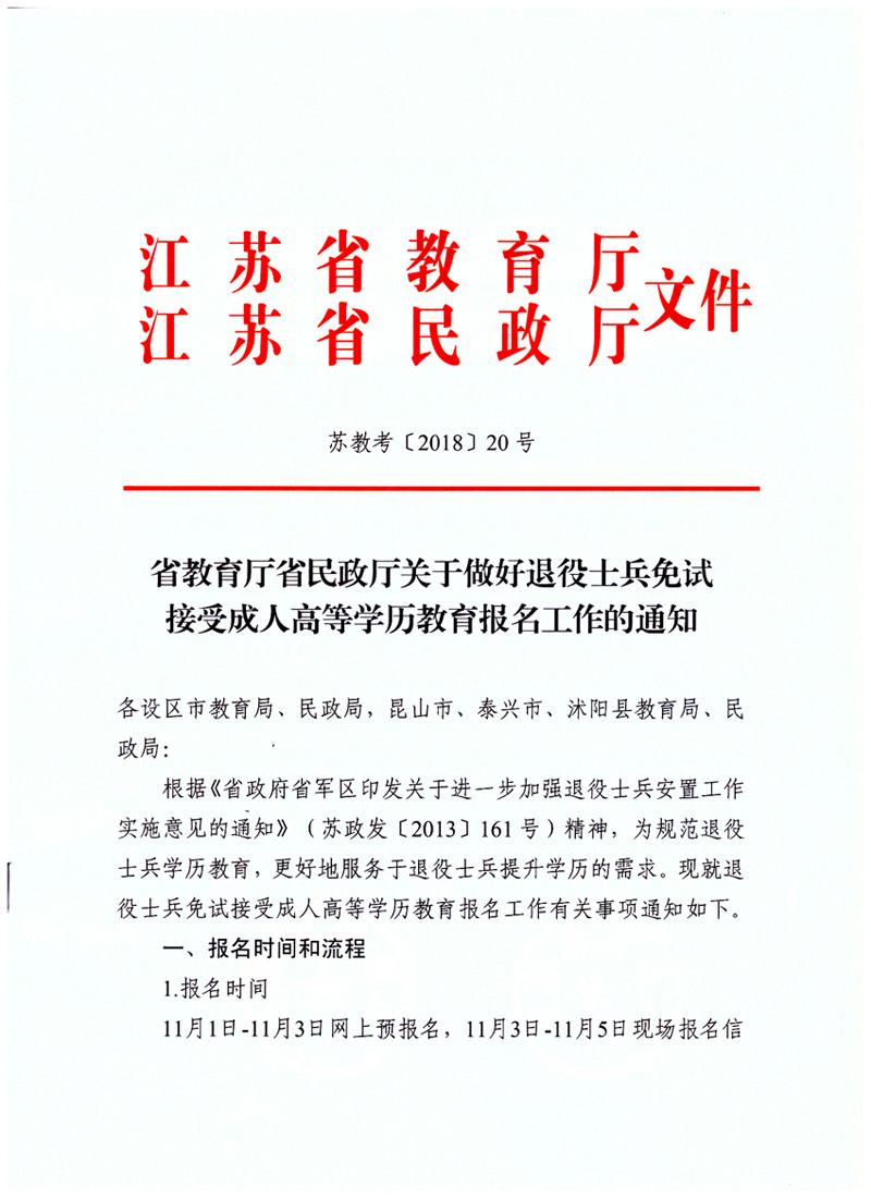 2018年江苏省关于做好退役士兵面试接受成人高等学历教育报名工作通知