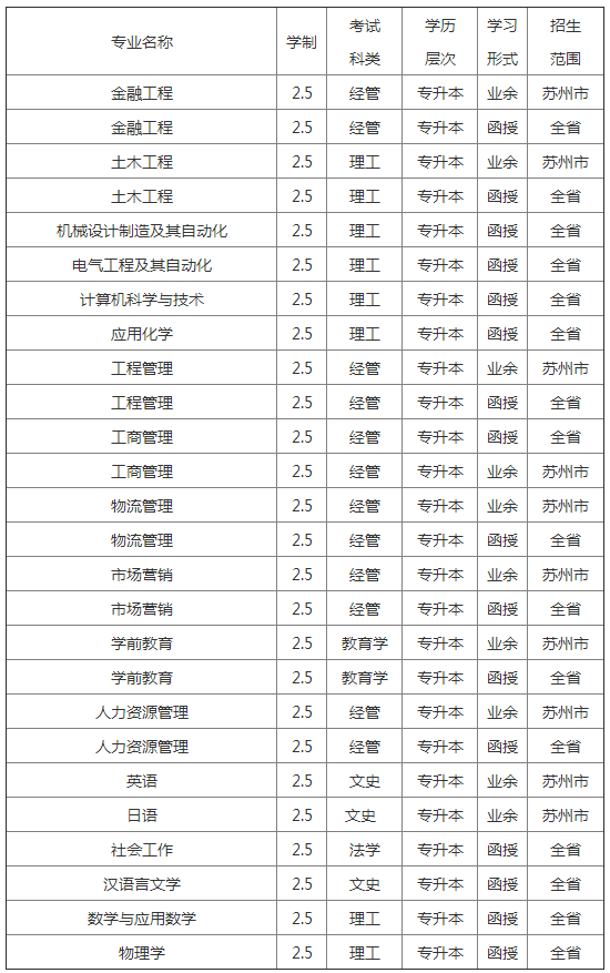注:我校2018年成人高校招生面向艰苦行业和校企合作改革项目试点工作按照江苏省教育考试院相关要求开展,学校与有意向的相关行业协会、园区、政府部门、企业签订联合培养合作协议,开展自主命题招生改革试点项目,招生专业及范围以省教育考试院正式公布的文件为准,具体内容请将在苏州科技大学继续教育学院网站发布《苏州科技学院2018年成人高校招生面向艰苦行业和校企合作改革项目招生简章》。