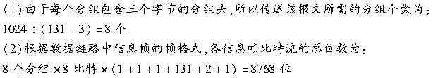 第1题 在分组交换网中,假设网络层的分组长度为131字节,其中分组头占3字节,此分组在数据链路层上传输时,应嵌入到信息帧(1帧)的信息字段中。如果运输层有一长度为1024字节的报文需送往目标计算机,试问: