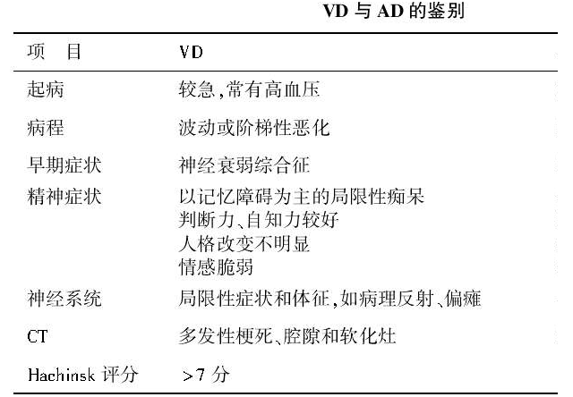 第2题 列表鉴别血管性痴呆(VD)与阿尔茨海默病(AD)。