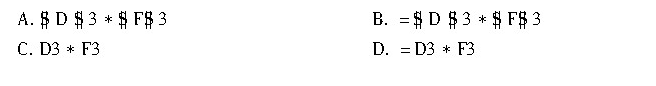 第20题 已知G3中的数据为D3与F3中数据之积,若该单元格的引用为相对引用,则G3中的公式应为()