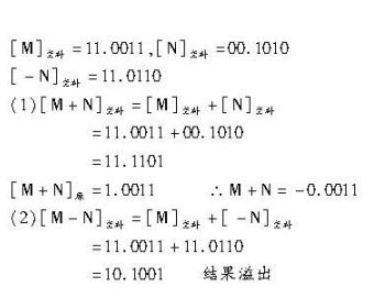 第2题 已知M=-0.1101,N=+0.1010,用定点加减法求M+N和M-N,并指出结果是否溢出。